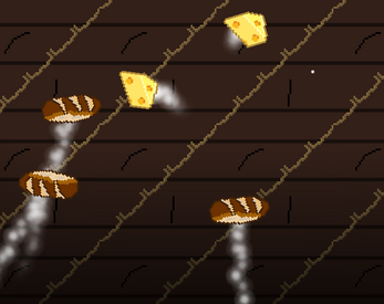 A fruit ninja clone with a twist: 2 blades. You must alternate the blade you use with the left/right mouse buttons to cut bread and cheese accordingly.